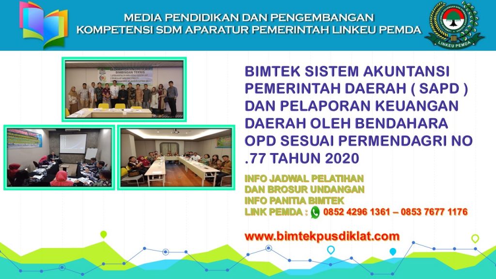 06 Feb BIMTEK KEUANGAN PEMDA Bimtek Sistem Akuntansi Pemerintah Daerah ( SAPD ) Dan Pelaporan Keuangan Daerah Oleh Bendahara OPD Sesuai Permendagri No 77 Tahun 2020 Ditulis oleh BIMTEKPUSDIKLAT 6 Februari 2021 Lanjutkan membaca
