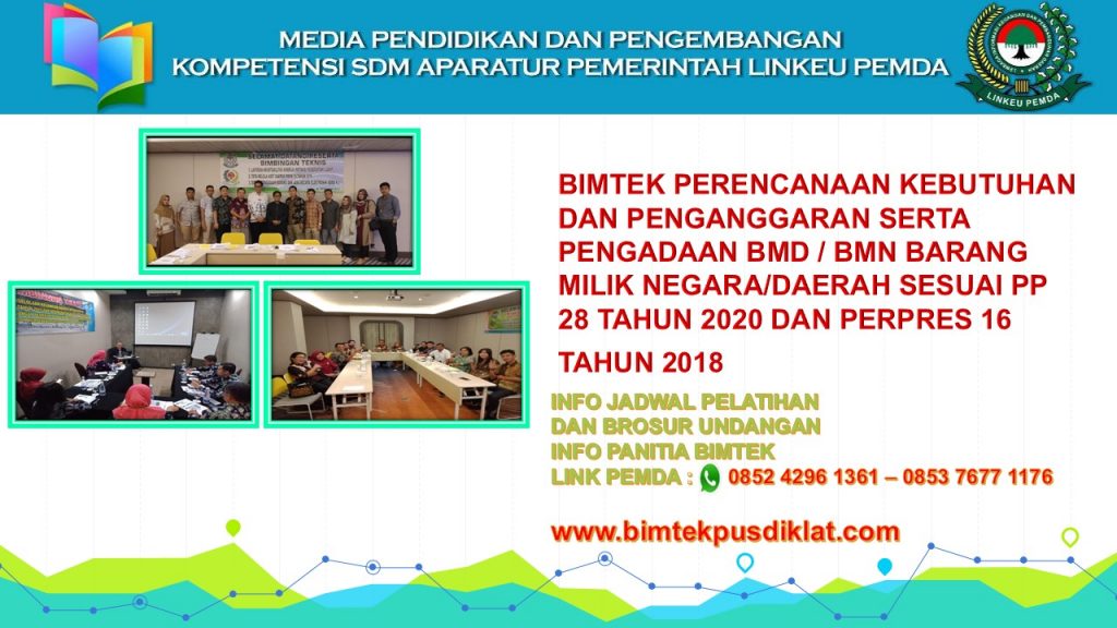 03 Jul BIMTEK BMD / ASET PEMDA, BIMTEK DIKLAT PEMDA LAINNYA Bimtek Perencanaan Kebutuhan dan Penganggaran serta Pengadaan BMD / BMN Barang Milik Negara/Daerah Sesuai PP 28 Tahun 2020 Ditulis oleh BIMTEKPUSDIKLAT 3 Juli 2020 Lanjutkan membaca