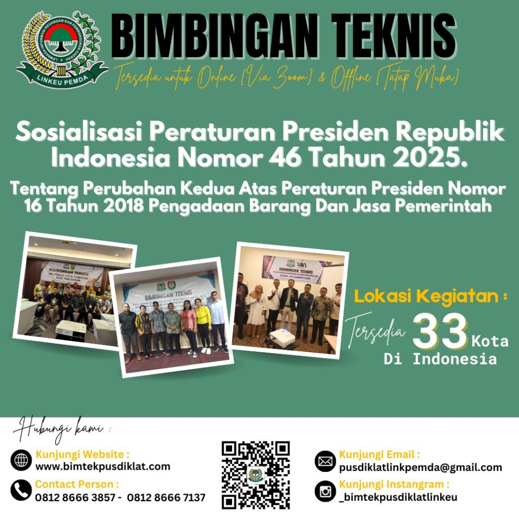 02 Mei BIMTEK BARANG JASA PEMERINTAH DAERAH BIMTEK PERPRES NO.46 TAHUN 2025 PEDOMAN PENGADAAN BARANG DAN JASA PEMERINTAH TAHUN 2025 Ditulis oleh BIMTEKPUSDIKLAT 2 Mei 2025 Lanjutkan membaca