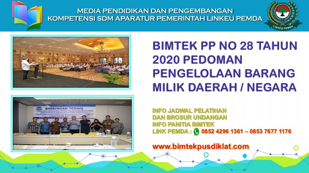 30 Jun BIMTEK BARANG JASA PEMERINTAH DAERAH, BIMTEK BMD / ASET PEMDA, BIMTEK DIKLAT PEMDA LAINNYA Bimtek PP No 28 Tahun 2020 Pedoman Pengelolaan Barang Milik Daerah / Negara Ditulis oleh BIMTEKPUSDIKLAT 3 Juli 2020 Lanjutkan membaca